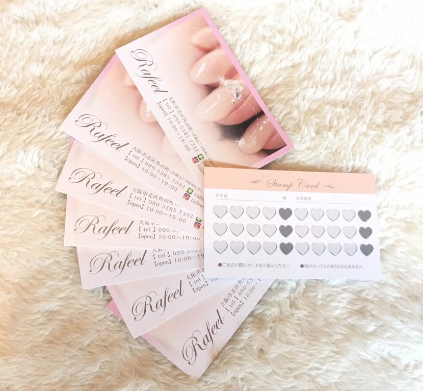 施術したお客様のネイル写真イメージやネイルチップのイメージを名刺やショップカード・チラシなどにご使用されるサロン様が多く、オリジナリティ溢れるショップカードでご好評いただいております。